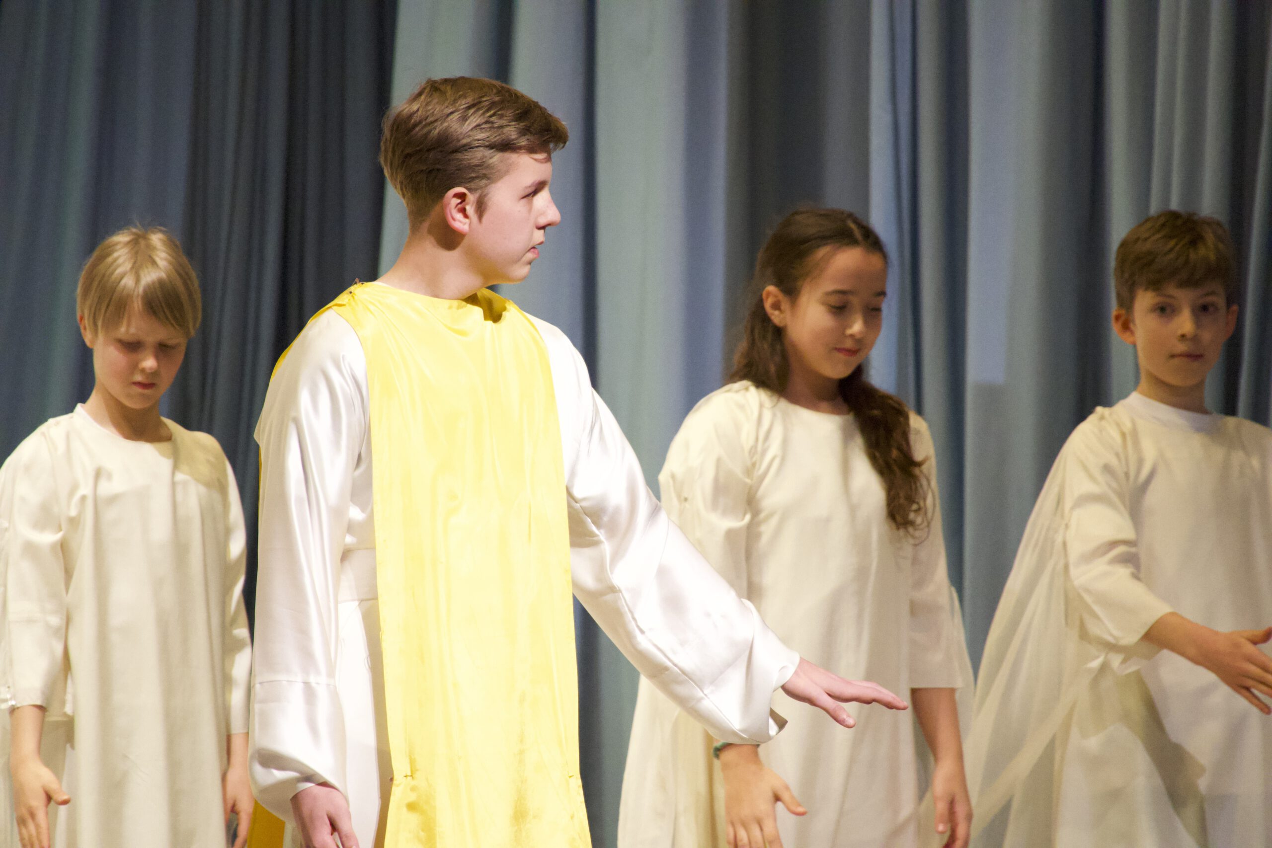 Es ist Tradition an unserer Schule, dass die 5. Klassen im Februar oder März – um Rudolf Steiners Geburtstag herum – jedes Jahr sein „Märchen vom Quellenwunder“ eurythmisch zur Aufführung bringen.