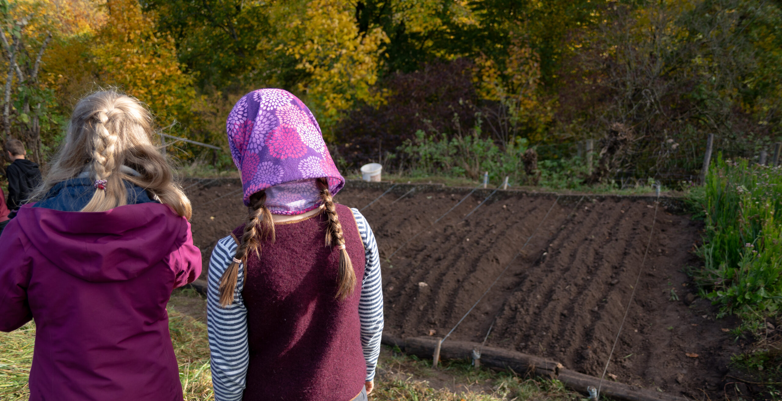 Ein besonderes Element in unserem Schulgarten sind die Ziegen und die Schafe, die von allen sehr geschätzt werden. Einmal darf man ihnen Futter aus dem Garten oder der Küche bringen, ein anderes Mal werden sie auf die Weide geleitet oder in den Stall gebracht und besonders gerne kommen sie mit auf den Waldspaziergang. Mit ihrem Mist helfen sie uns, die Fruchtbarkeit im Garten zu erhalten und zu verbessern.